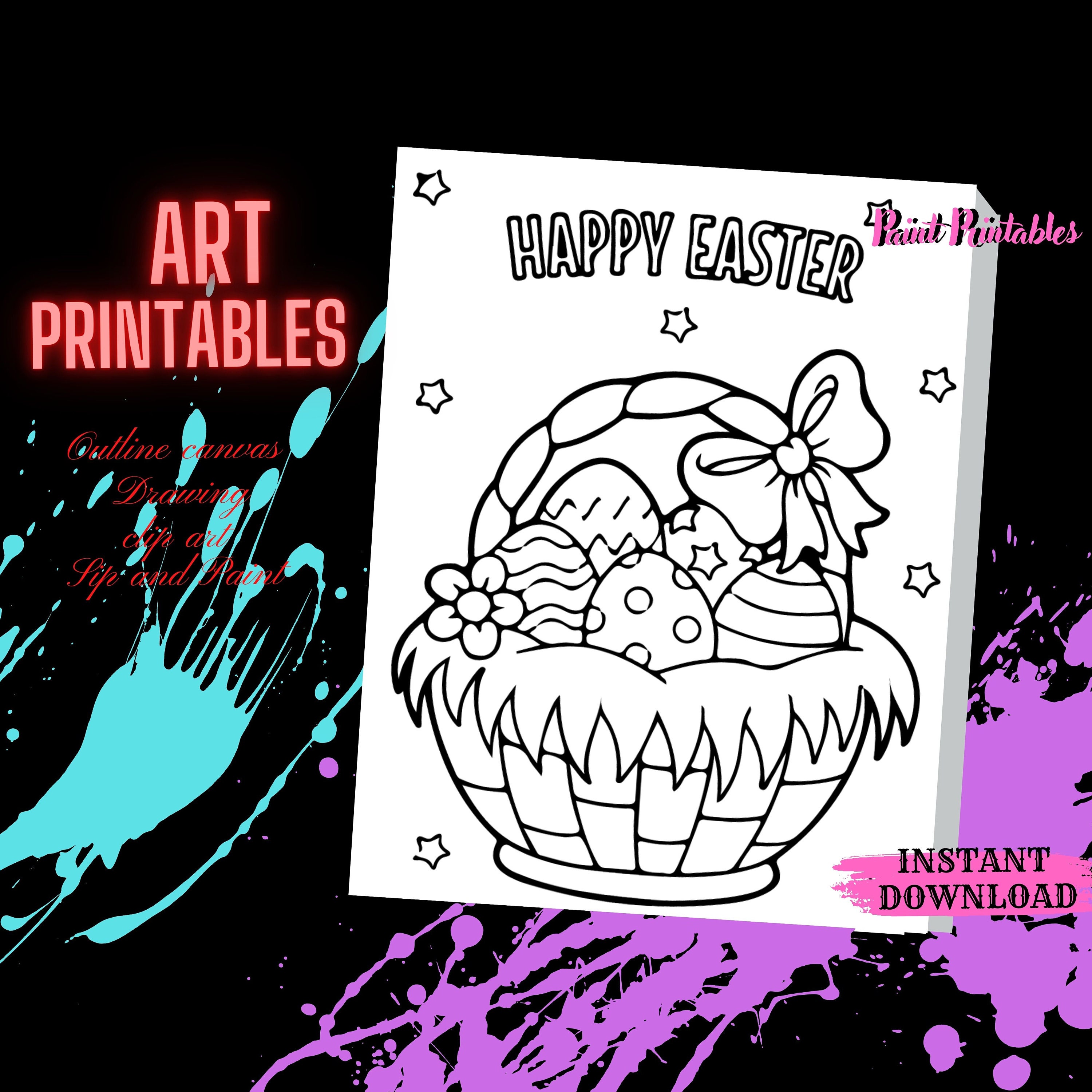 Easter Egg Coloring Page Paint And Sip Diy Paint Party Paint Etsy